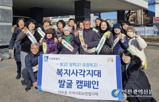 [인천광역신문] 박진 기자 | 수원시 장안구 연무동 지역사회보장협의체는 지난 21일 연무시장 거리에서 '복지사각지대 발굴 캠페인'을 진행했다.