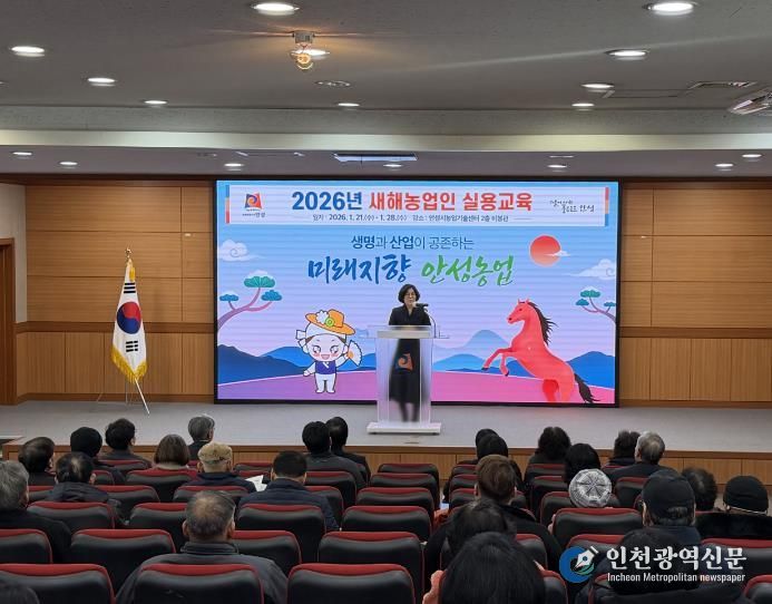 [인천광역신문] 박진 기자 | 안성시는 지난 21일 원익재 센터 소장의 농정시책 강의로 2026년 새해농업인 실용교육을 시작했다고 밝혔다.