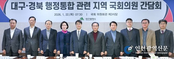 [인천광역신문] 박진 기자 | 대구광역시는 1월 22일 국회에서 대구지역 국회의원들과 만나 대구·경북 행정통합 추진을 위한 협력 방안을 논의했다.