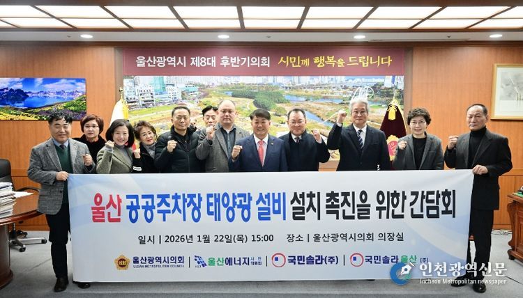 [인천광역신문] 박진 기자 | 울산광역시의회 이성룡 의장은 22일 의장실에서 ‘울산광역시 공공주차장 태양광 설비 설치 촉진을 위한 간담회’를 개최했다.