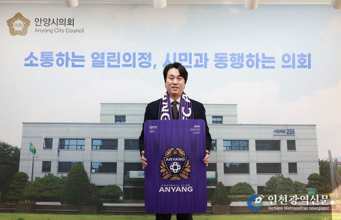 [인천광역신문] 박진 기자 | 안양시의회 박준모 의장이 1월 23일 시의회 의장실에서 2026시즌 FC안양 연간회원권을 구매했다.
