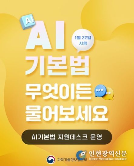 [인천광역신문] 박진 기자 | AI 산업 진흥 기반을 조성하기 위한 '인공지능기본법'이 1월 22일 시행됩니다.