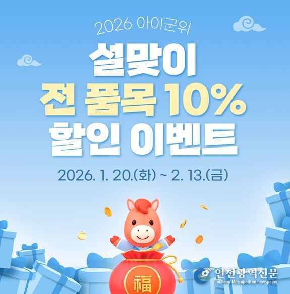 이번 설맞이 전 품목 10% 할인 행사는 1월 20일부터 2월 13일까지 진행되며, 자세한 내용은 아이군위 쇼핑몰에서 확인할 수 있다.