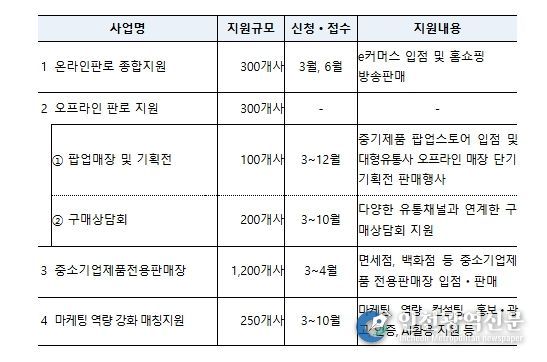 이번 사업의 총 지원 규모는 141억 7천만 원이며, 주요 지원 프로그램은 ①온라인 판로지원, ②오프라인 판로지원, ③중소기업제품 전용판매장 운영, ④마케팅 역량강화 프로그램 등이다.