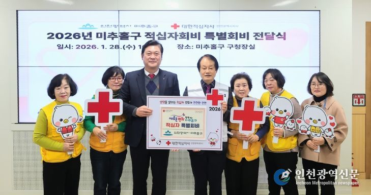 [인천광역신문] 관리자 기자 | 인천 미추홀구는 28일 구청장실에서 대한적십자사 인천지사(회장 조의영)와 적십자봉사회 미추홀구협의회(회장 조혜정) 등이 참석한 가운데 적십자 특별회비 200만 원을 전달했다.