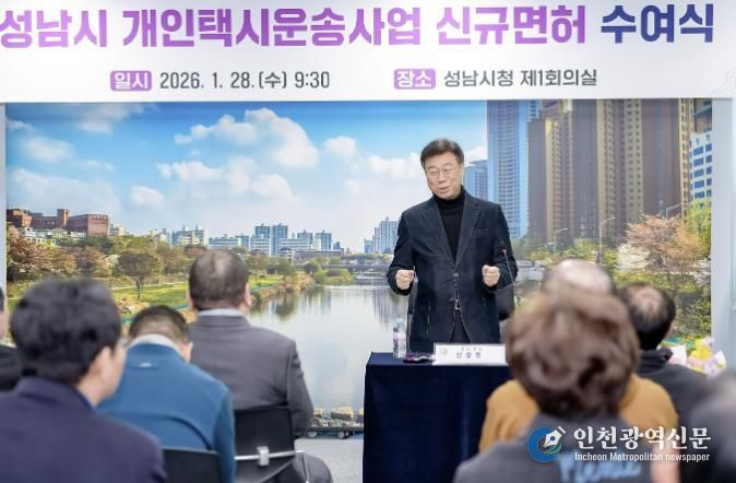 [인천광역신문] 관리자 기자 | 성남시는 28일 오전 9시30분 시청 제1회의실에서 개인택시운송사업 신규 면허 수여식을 열고, 장기 무사고 운전 경력을 보유한 운수종사자 10명에게 개인택시 면허증을 수여했다. 이는 2010년 이후 근 16년 만에 이뤄진 성남시 개인택시 신규면허 발급이다.