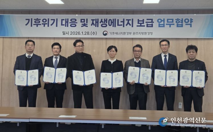 [인천광역신문] 관리자 기자 | 충북도는 28일 원주지방환경청, 강원특별자치도 및 에너지 공기관과 함께 기후위기 대응 역량을 강화하고 재생에너지의 안정적인 보급 확대를 위한 업무협약을 체결했다.