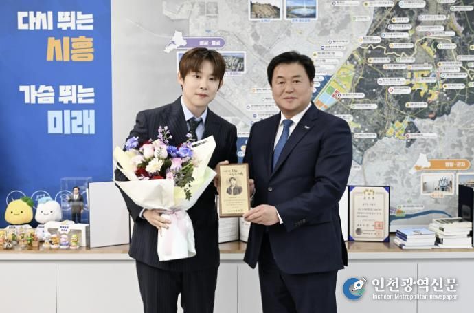 [인천광역신문] 관리자 기자 | 시흥시는 인기 경연 프로그램 ‘미스터트롯2’ 출신 가수 진욱을 시흥시 명예문화홍보대사로 위촉하고, 1월 28일 시장실에서 위촉장을 전달했다.