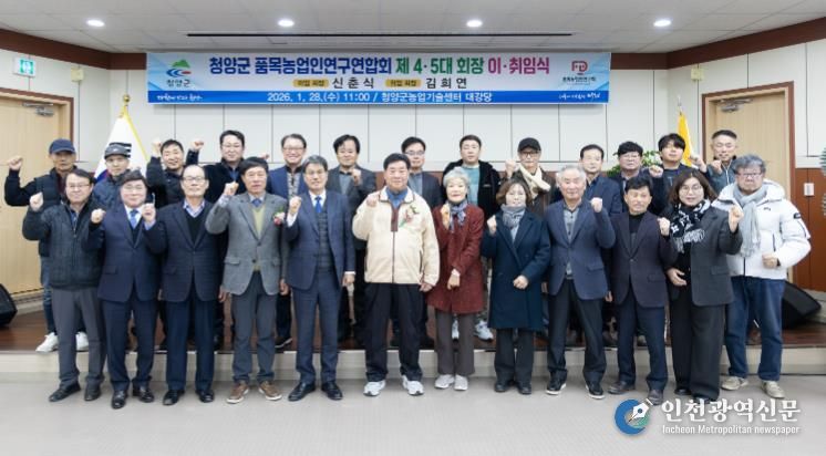 [인천광역신문] 관리자 기자 | 청양군은 지난 28일 농업기술센터에서 품목농업인연구연합회 회원 및 내빈 등 100여 명이 참석한 가운데 연합회장 이·취임식을 개최했다고 밝혔다.