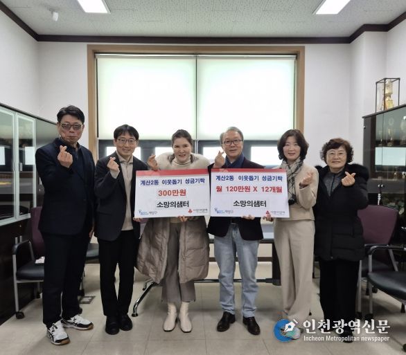 [인천광역신문] 관리자 기자 | 인천 계양구 계산2동 소재 소망의샘터(대표회장 최희용)가 지난 27일 계산2동 행정복지센터를 방문해 매월 120만 원씩, 1년간 총 1,440만 원의 성금 기부를 약정했다.