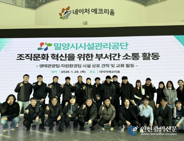 [인천광역신문] 관리자 기자 | 밀양시시설관리공단(이사장 김경민)은 29일 네이처에코리움과 밀양시 생활폐기물 소각시설에서 부서 간 소통 활동을 추진하며 조직 내 협업 강화와 소통 문화 정착에 나섰다.