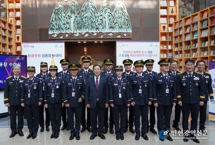 [인천광역신문] 관리자 기자 | 세종소방본부가 지난 29일 세종시청 책문화센터에서 시민 생명과 안전을 책임질 12명의 신규 소방공무원 임용식을 개최했다.
