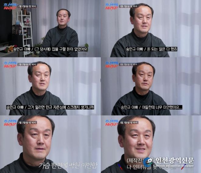 [인천광역신문] 관리자 기자 | TV CHOSUN 극사실주의 다큐 예능 ‘조선의 사랑꾼’에서 '국대 출신' 축구선수 송민규의 아버지가 아들의 결혼식에 앞서 가난했던 과거를 회상한다.