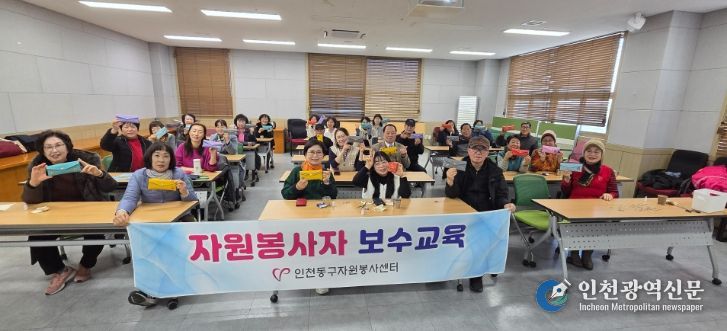 [인천광역신문] 관리자 기자 | 인천동구자원봉사센터는 지난달 26일~30일까지 주민행복센터에서 우수자원봉사자 대상‘2026 우수자원봉사자 보수교육(에코 프렌즈 동구)’을 성황리 마무리했다고 밝혔다.