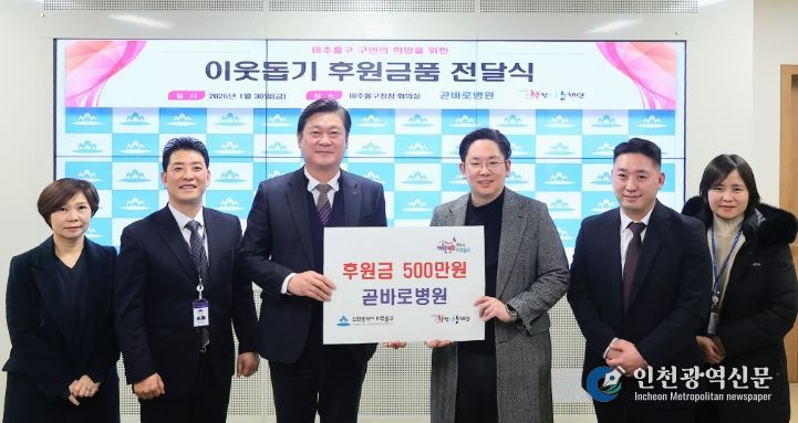[인천광역신문] 관리자 기자 | 인천 미추홀구는 30일 곧바로병원(병원장 신승준)으로부터 후원금 500만 원을 전달받았다.