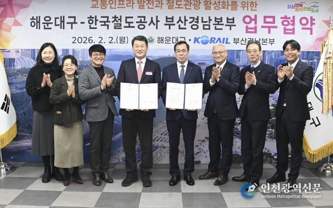 [인천광역신문] 관리자 기자 | 해운대구는 2일 한국철도공사 부산경남본부(본부장 손명철)와 상생협력 업무협약을 체결했다.