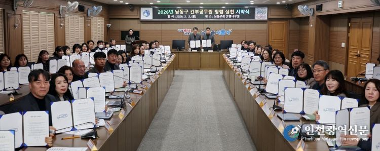 [인천광역신문] 관리자 기자 | 인천시 남동구는 2026년 청렴정책추진단 회의 및 간부 공무원 청렴 서약식을 개최하고, 기관장과 간부 공무원을 중심으로 책임 있는 청렴 실천 의지를 다졌다고 3일 전했다.