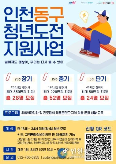 [인천광역신문] 관리자 기자 | 인천 동구는 구직단념청년 등 장기간 미취업 상태에 놓인 청년 재도약을 위한‘2026년 청년도전지원사업’을 추진한다고 밝혔다.