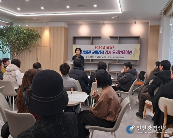 [인천광역신문] 관리자 기자 | 경남 밀양시는 3일 여성회관 강의실에서 2026년 제1기 교육강좌 개강을 앞두고 교육 운영의 질을 높이고 강사들과의 소통을 강화하기 위한 오리엔테이션을 개최했다.