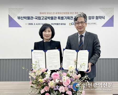 [인천광역신문] 관리자 기자 | 부산박물관과 국립고궁박물관은 2026년 부산에서 열리는 '제48차 유네스코 세계유산위원회' 개최를 기념하는 특별기획전 '조선 왕실과 세계유산'(가제)의 공동 개최를 위한 업무협약(MOU)을 오늘(4일) 체결했다고 밝혔다.