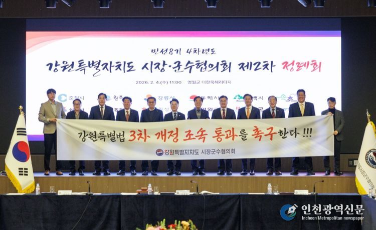 [인천광역신문] 관리자 기자 | 강원특별자치도시장군수협의회는 2026년 2월 4일 오전 11시, 영월군 ‘더 한옥헤리티지 영빈관’에서 민선8기 4차년도 제2차 정례회를 개최하고 각 시·군의 주요 현안에 대하여 심의하고 대응책을 논의했다.