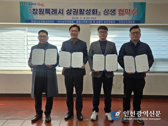 [인천광역신문] 관리자 기자 | 창원시상권활성화재단(이사장 장금용)은 2월 4일 오후 2시, 창원시상권활성화재단 어울림센터에서 마산통합상인연합회, 창원시 전통시장 및 상점가 상인연합회, 진해상인연합회(대표시장: 진해중앙시장)와 '창원특례시 상권활성화'를 위한 상생 업무협약을 체결했다.