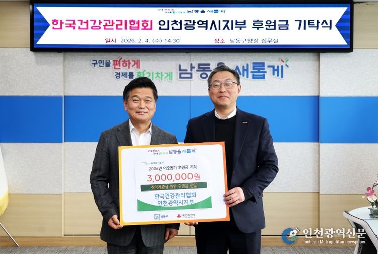 [인천광역신문] 관리자 기자 | 인천시 남동구는 한국건강관리협회 인천광역시지부(본부장 이상철)로부터 어려운 이웃을 위한 후원금 300만 원을 기탁받았다고 6일 전했다.