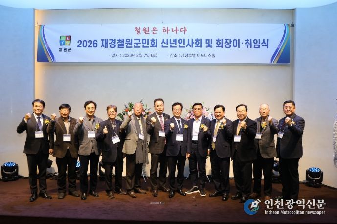 [인천광역신문] 관리자 기자 | 철원군은 2월 7일 오후 6시 서울 삼정호텔에서 열린 '2026년 재경철원군민회 이취임식 및 신년인사회'에 참석해 재경철원군민회의 새 출발을 축하하고, 철원군과 수도권 향우 간 상생 협력 강화 의지를 밝혔다.