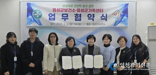 [인천광역신문] 관리자 기자 | 음성군보건소와 음성군가족센터는 지난 9일 가족센터 이용자의 건강 수준 향상과 삶의 질을 높이는 데 함께 노력해 나가기 위해 업무협약을 체결했다.