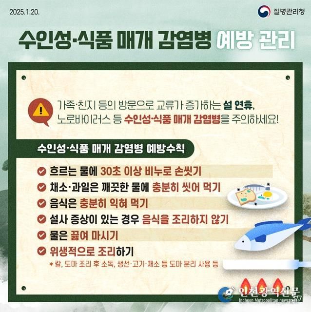 겨울철에 주로 발생하는 노로바이러스 감염증이 최근 영유아(0~6세)와 학생을 중심으로 지속적으로 발생하고 있어 각별한 주의가 요구된다. 노로바이러스는 오염된 음식물뿐만 아니라 환자와의 접촉, 비말 등을 통해서도 전파될 수 있어 많은 사람이 모이는 명절에 확산 위험이 더 높아진다. 파주보건소는 관내 어린이집, 사회복지시설 등 감염 취약시설에 예방수칙 안내문을 배포하고, 위생 관리를 철저히 해줄 것을 당부했다.