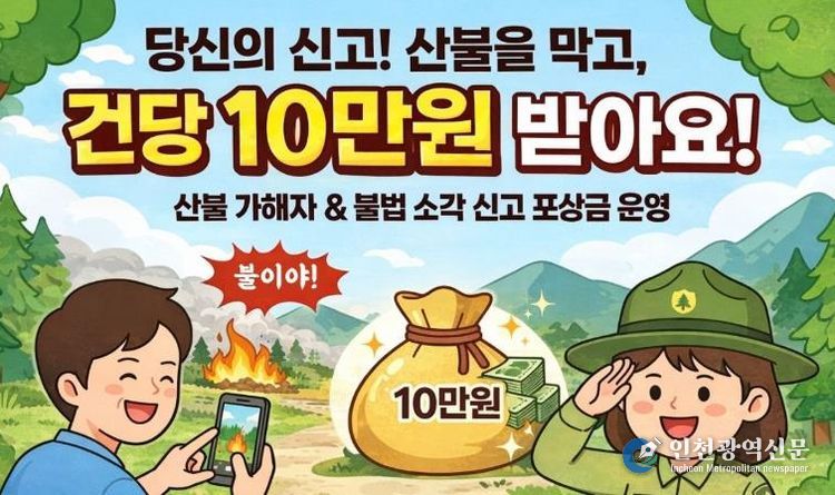 산림 또는 산림 인접 지역(100m 이내)에서 발생하는 논·밭두렁 태우기, 쓰레기 소각 등 불법 행위를 신고해 가해자 검거에 기여하거나 산불 확산을 방지한 경우, 건당 10만 원의 포상금을 지급한다.