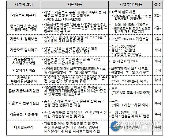 사업별 자세한 내용은 기술보호 통합 포털 기술보호울타리에서 확인할 수 있다.