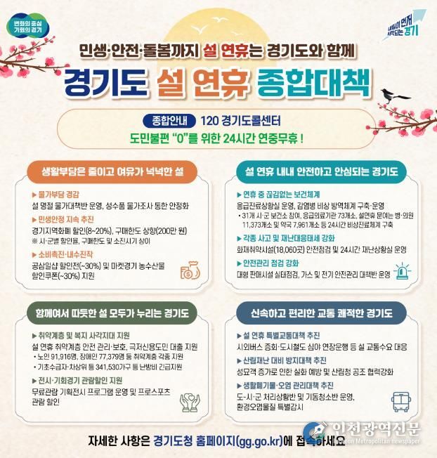 [인천광역신문] 관리자 기자 | 경기도가 도민들이 따뜻하고 편안한 명절을 보낼 수 있도록 ‘설 연휴 종합대책’을 추진한다.