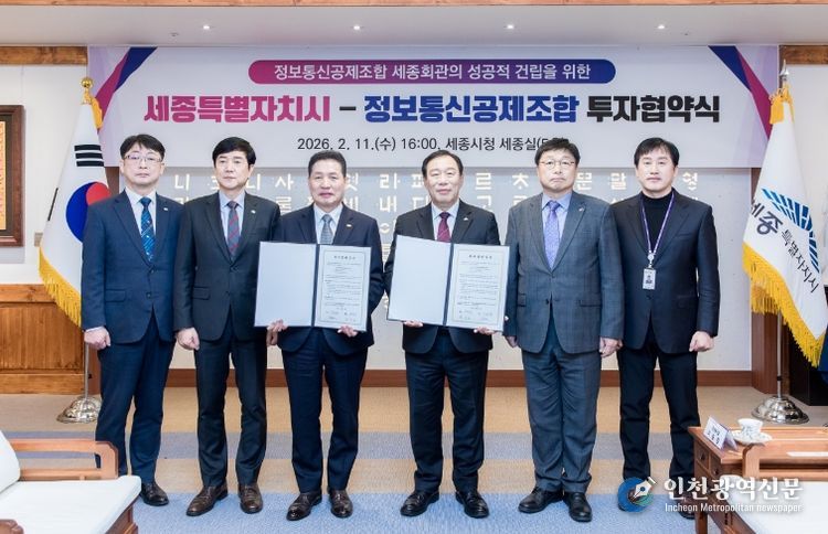 [인천광역신문] 관리자 기자 | 세종특별자치시와 정보통신공제조합이 11일 시청 세종실에서 정보통신공제조합 세종회관 건립을 위한 470억 원 규모의 투자협약을 체결했다.