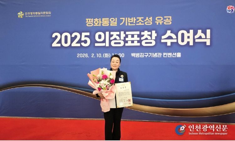 [인천광역신문] 관리자 기자 | 정임행 민주평화통일자문회의 강남구협의회 차석(㈜파모소 회장)이 2026년 2월 10일 오후 2시 서울 용산구 백범김구기념관 컨벤션홀에서 개최된 민주평화통일자문회의 2025 의장표창 수여식(서울지역)에서 민주평화통일자문회의 의장 대통령 표창을 수상했다.