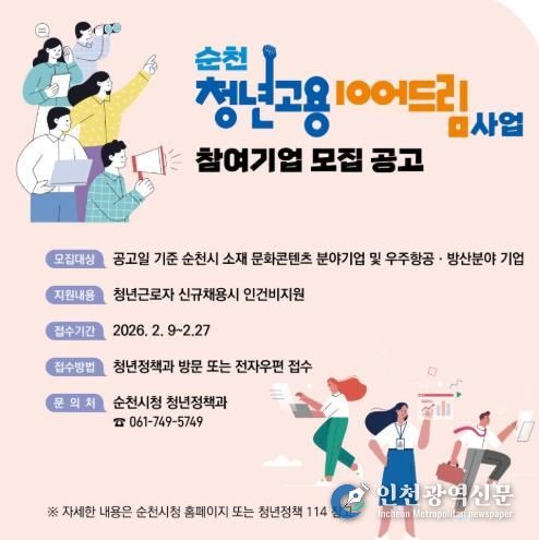 [인천광역신문] 관리자 기자 | 순천시는 미래전략산업과 함께 도약하는 순천형 청년일자리 사업, ‘청년고용 이어드림’을 운영한다고 밝혔다.