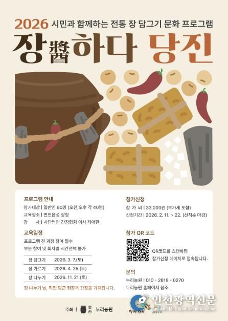 참가 대상은 전통 장과 음식 문화에 관심 있는 시민과 일반인으로, 장 담그기 경험이 없는 초보자도 쉽게 참여할 수 있도록 교육 과정이 구성됐다. 모집 인원은 총 80명이며 선착순으로 마감된다.