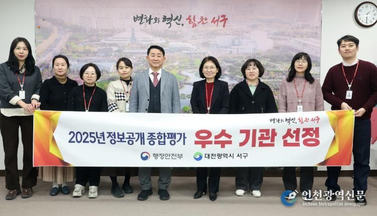 [인천광역신문] 관리자 기자 | 대전 서구가 행정안전부 주관 2025년 정보공개 종합평가에서 우수 기관으로 선정됐다.