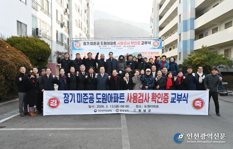 [인천광역신문] 관리자 기자 | 창녕군은 13일 창녕읍 도원아파트에서 입주예정자대표회 김순희 회장에게 장기 미준공 도원아파트의 사용검사 확인증을 교부했다.