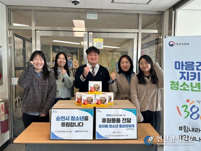 [인천광역신문] 관리자 기자 | 순천시약사회(회장 소정환)는 13일 청소년상담복지센터를 방문해 청소년들의 건강관리를 위한 청소년 종합영양제(300만원 상당)를 전달했다.