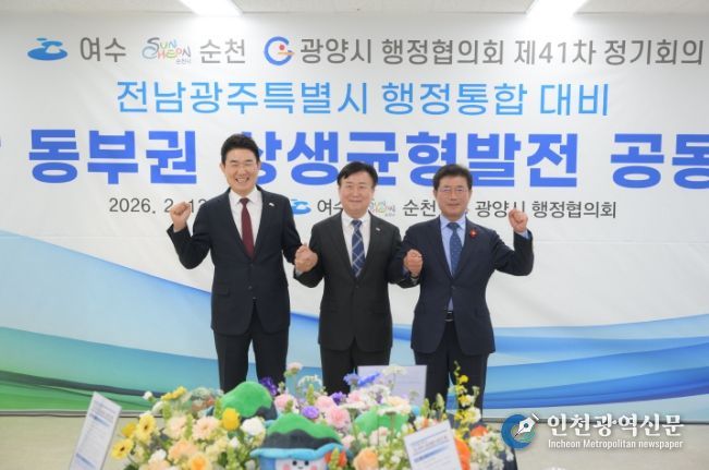 [인천광역신문] 관리자 기자 | 순천시는 여수‧광양시와 함께 13일 순천대학교 70주년기념관에서 제41차 여수‧순천‧광양시 행정협의회 정기회의를 열고, 전남 동부권의 미래 경쟁력 확보를 위한 공동건의 3건을 공식 의결했다고 밝혔다.
