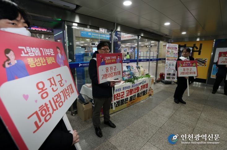 [인천광역신문] 관리자 기자 | 옹진군은 민족 최대 명절인 설을 맞아 지난 14일 인천연안여객터미널에서 귀성객과 방문객을 대상으로 NH농협은행 옹진군지부와 함께 고향사랑기부제 홍보 캠페인을 실시했다고 밝혔다.