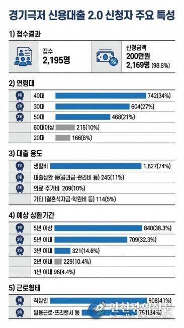[인천광역신문] 관리자 기자 | 경기도가 금융취약계층의 마지막 안전망 역할로 추진한 ‘경기 극저신용대출 2.0’ 1차 신청자 29%가 고금리·불법사금융 이용 경험이 있는 것으로 조사됐다.