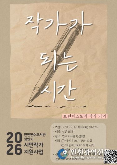 [인천광역신문] 관리자 기자 | 인천광역시교육청연수도서관은 인천시민을 대상으로 예비작가 지원 프로그램 ‘작가가 되는 시간’ 참여자를 모집한다.