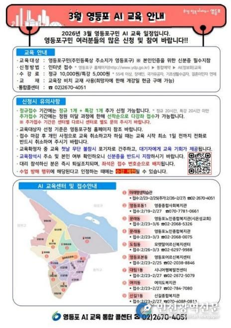 최호권 영등포구청장은 “AI는 이제 특정 분야의 기술이 아닌 일상에서 누구나 갖춰야 하는 기본 역량”이라며 “구민 누구나 가까운 곳에서 쉽게 배우고 활용할 수 있도록 디지털 교육 환경을 지속 확대해 나가겠다”라고 전했다.