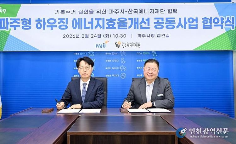 [인천광역신문] 관리자 기자 | 파주시는 지난 24일 한국에너지재단과 ‘기본주거 실현을 위한 파주형 하우징 에너지효율개선 공동사업’업무협약을 체결했다.