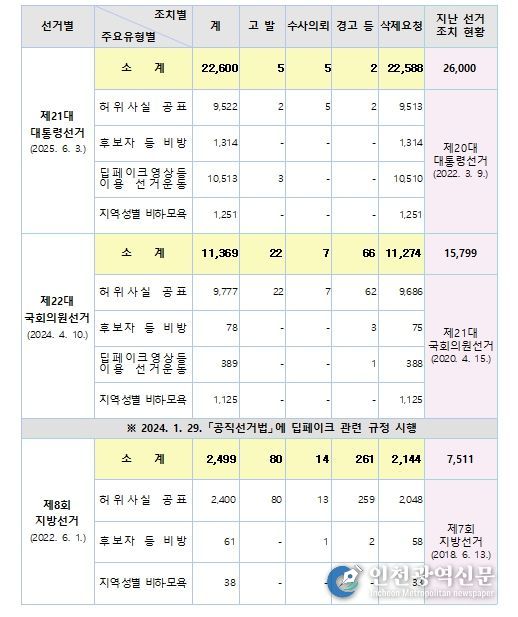 [인천광역신문] 관리자 기자 | 중앙선거관리위원회는 2월 25일 11개 유관기관·단체와 함께 ‘제9회 전국동시지방선거 딥페이크·허위사실공표·비방 대응 유관기관 대책회의’를 개최했다고 밝혔다.