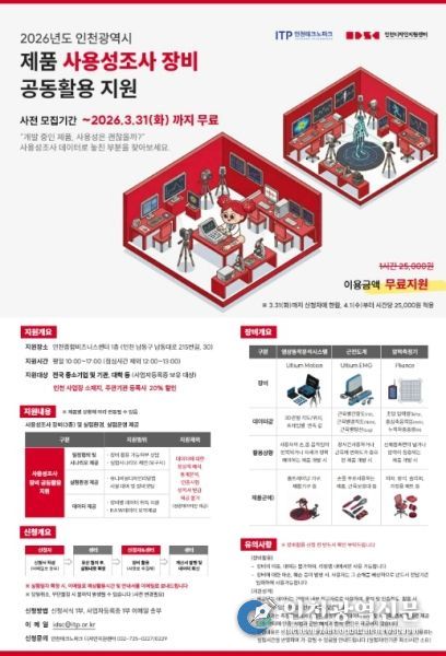 이번 사업은 실제 사용자의 체험을 기반으로 제품·서비스의 편리성과 안전성을 분석하는 사용성조사 장비 지원과, 실물 수준 출력이 가능한 고성능 3D프린팅 지원을 포함한다. 인천종합비즈니스센터 1층 유니버설디자인리빙랩에서 운영되며, 제품 개선 방향 도출부터 시제품 제작까지 연계 지원한다.