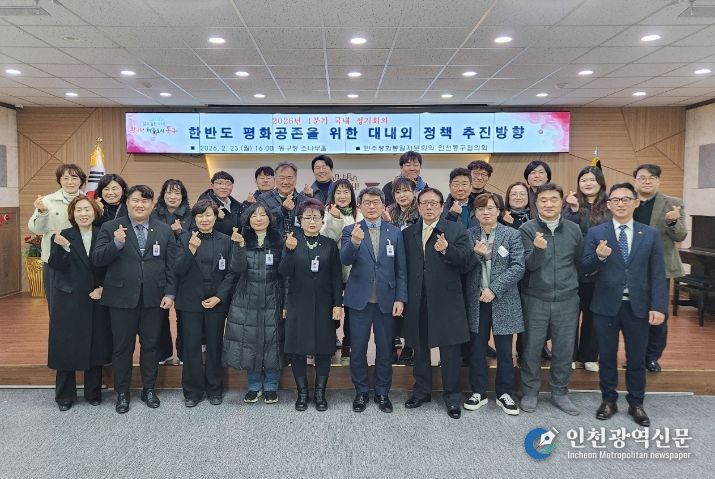 [인천광역신문] 관리자 기자 | 민주평화통일자문회의 인천동구협의회(협의회장 최현모)는 지난 23일 동구청 소나무홀에서‘한반도 평화공존을 위한 대내외 정책 추진방향’을 주제로 2026년 1분기 국내 정기회의를 개최했다고 밝혔다.
