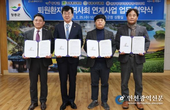 [인천광역신문] 관리자 기자 | 장흥군은 지난 25일 군청 상황실에서 퇴원환자의 지역사회 안정적 복귀를 지원하기 위해 장흥종합병원, 장흥우리병원, 장흥통합의료병원과 '퇴원환자 지역사회 연계사업' 업무협약을 체결했다고 밝혔다.